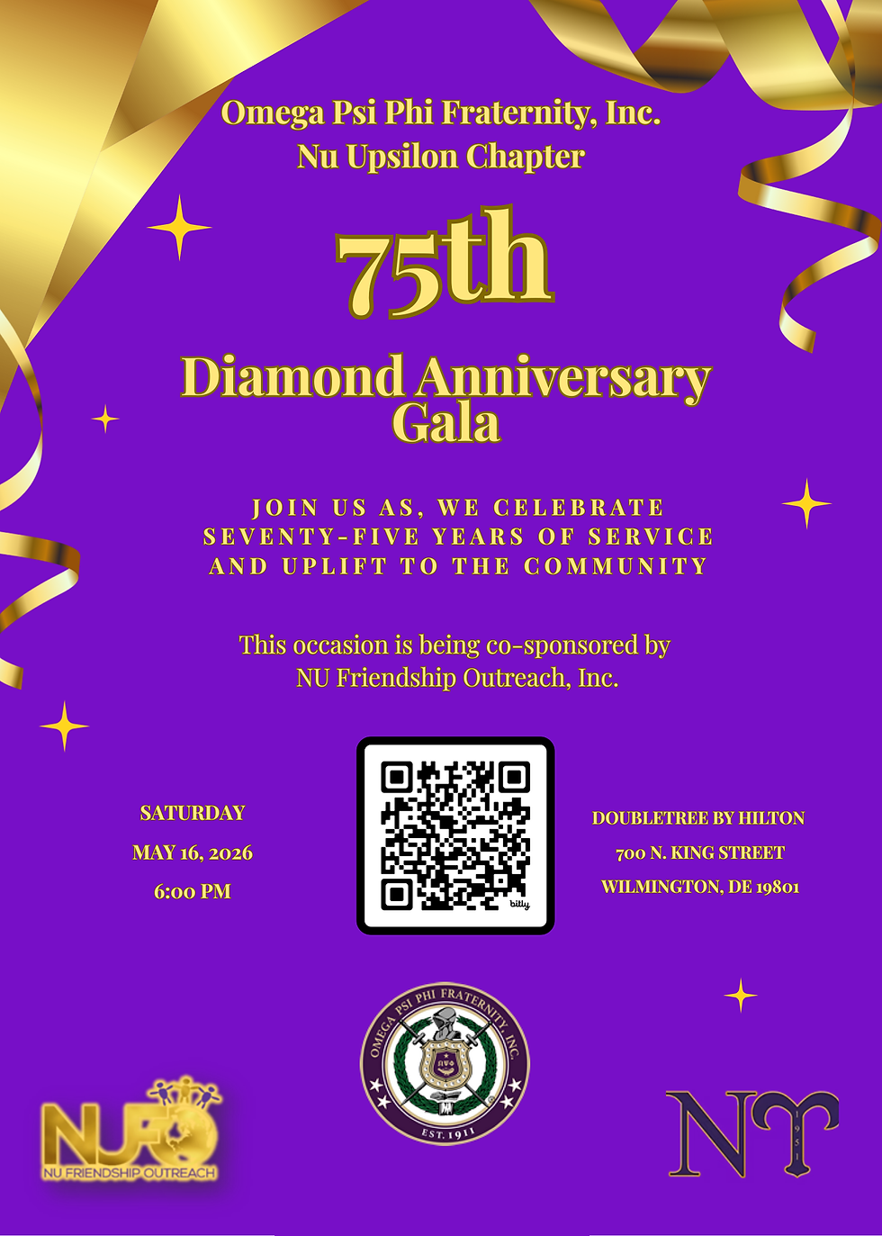 The Nu Upsilon Chapter of Omega Psi Phi Fraternity, Inc., in partnership with NU Friendship Outreach, Inc., invites you to celebrate a truly momentous occasion—our 75th Diamond Anniversary.